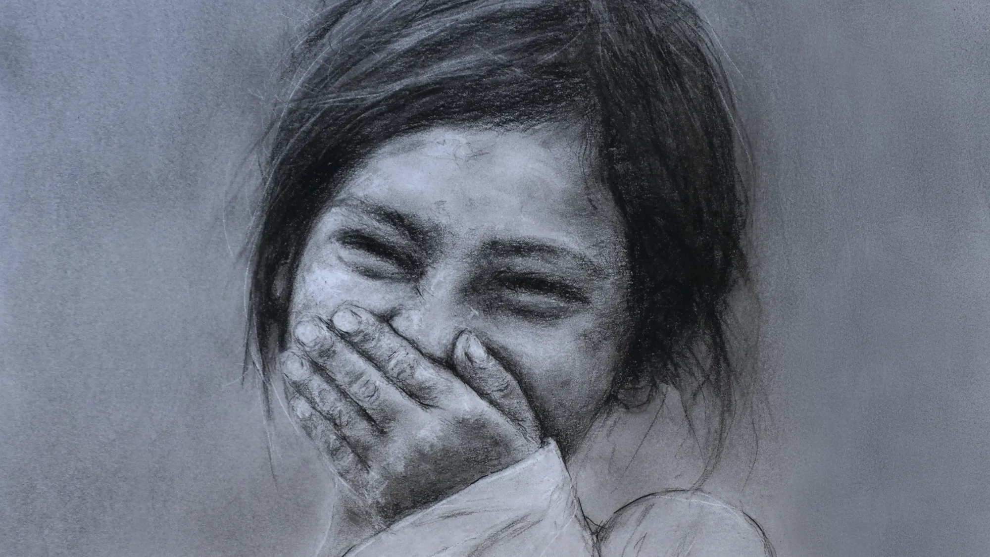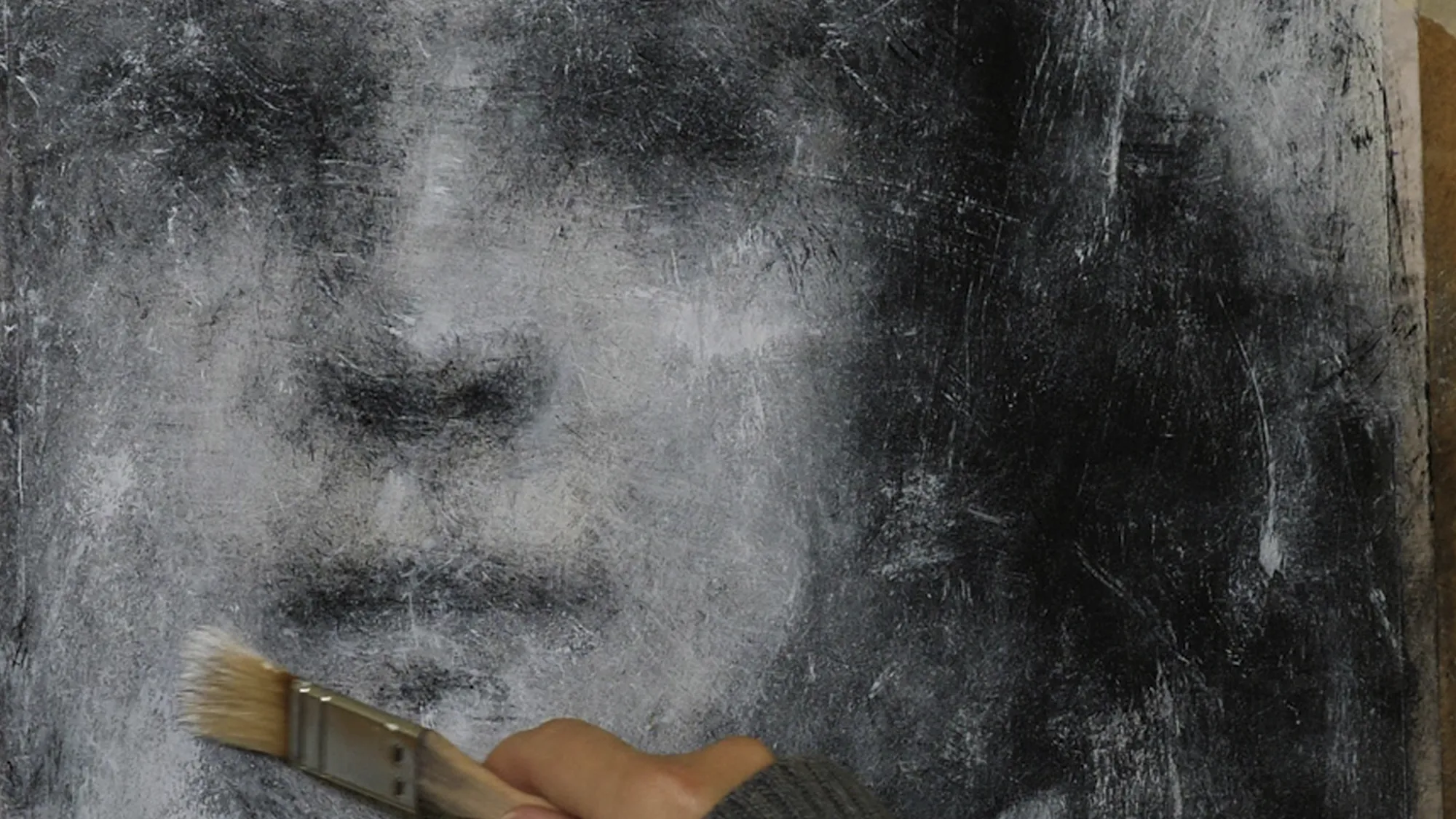 Working in charcoal, paint and hand-printing techniques,